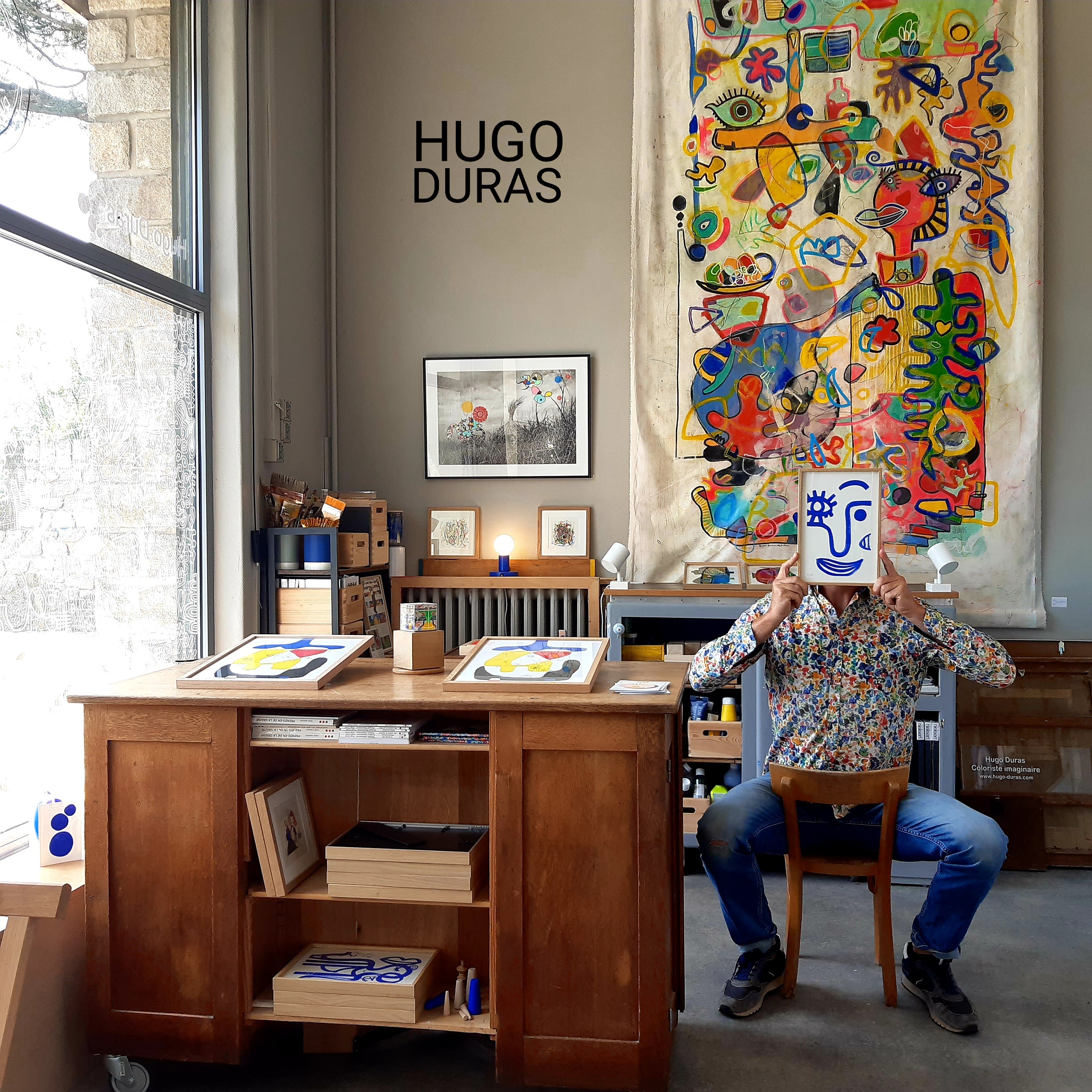 Hugo Duras dans son Atelier-Galerie à Nantesartiste intervenant crèche | artiste peintre intervenant école fresques | projet art visuel artiste | artiste peintre Nantes | atelier fresque en milieu scolaire maternelle | intervenant arts plastique | intervenant extérieur classe artistique | éveil artistique et culturel | médiation culturelle petite enfance | artiste peintre illustrateur médiathèque intervention | Nantes | activité peinture crèche | éducation artistique et culturelle | fresque murale | technique créative et éducative | pédagogie interactive | expression libre | performance artistique et participative | création collective | œuvre collective et participative | sensibilisation à l’art | éveil à l’art chez le jeune enfant |